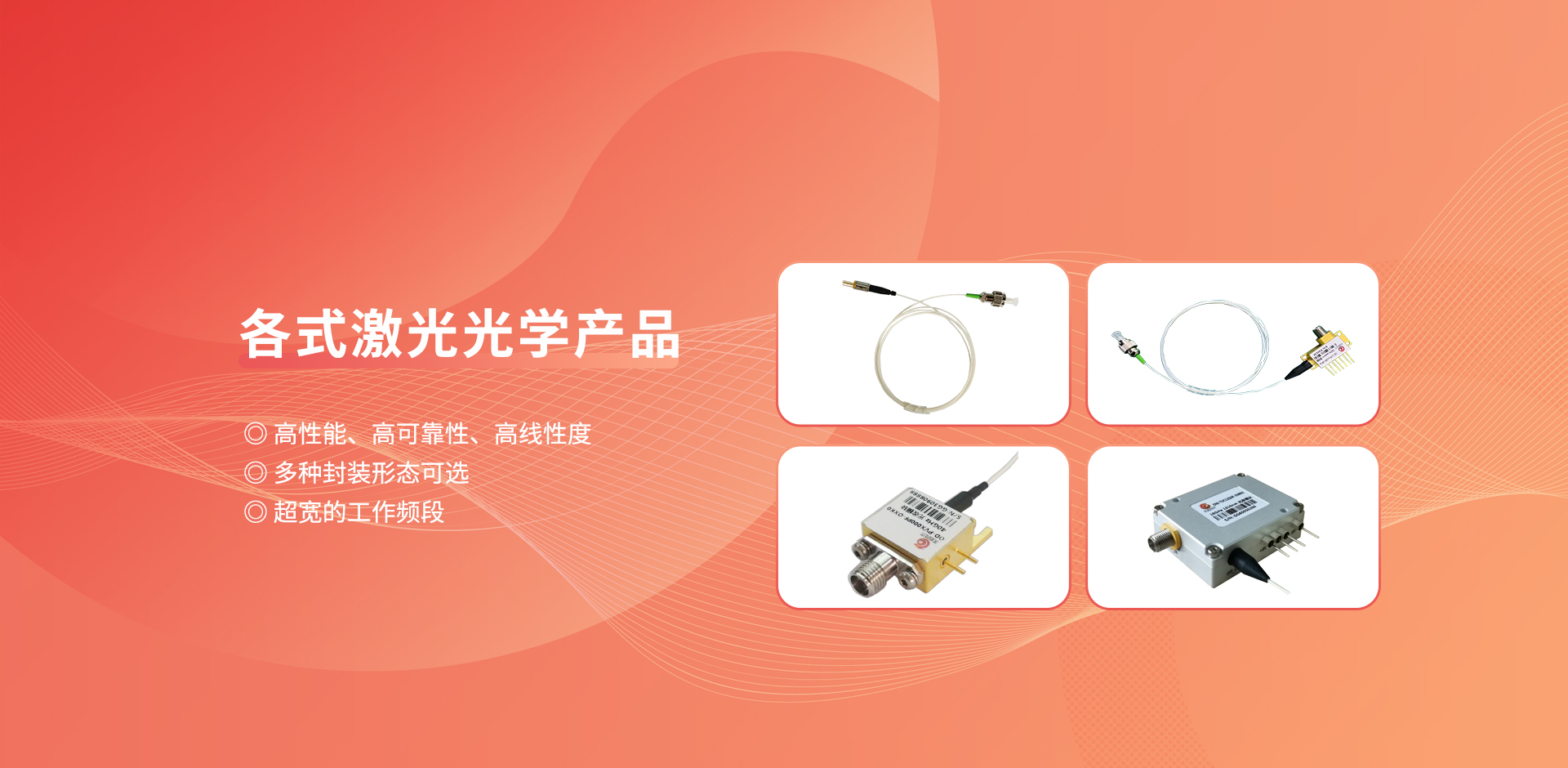 公司產(chǎn)品廣泛應用于衛(wèi)星通信、光傳感、人工智能、光纖通信、無線通信、導航定位、泛物聯(lián)網(wǎng)、激光定向能、超快超強超微激光加工等領(lǐng)域,并已為國內(nèi)諸多科研院所及高校提供系列化產(chǎn)品及解決方案。